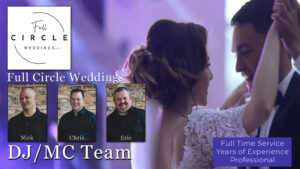 Full Circle Weddings DJ Services delivers high-energy, modern wedding entertainment for couples who want a professional DJ that can pack the dance floor. Our experienced wedding DJs know how to read the room, mix today’s hottest hits with timeless favorites, and keep your reception flowing smoothly from introductions to last call. Whether you’re planning a luxury ballroom wedding or a laid-back celebration, our DJs bring the vibe, professionalism, and stress-free coordination couples love.